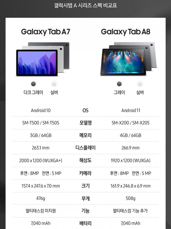[갤럭시] 갤럭시탭A8 SM-X200,64GB, Wi-Fi