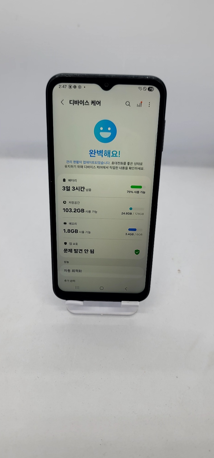 미세한 생활기스가 조금 있을 수 있지만 찍힘이 없고 외관이 전체적으로 깨끗한 제품입니다."깨끗한 스마트폰을 원하신다면 추천!"